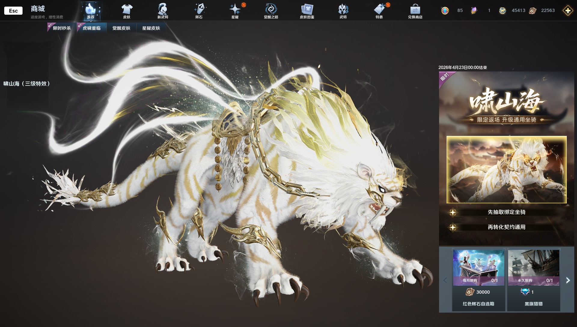 老虎啸山海返场,限时升级通用坐骑
