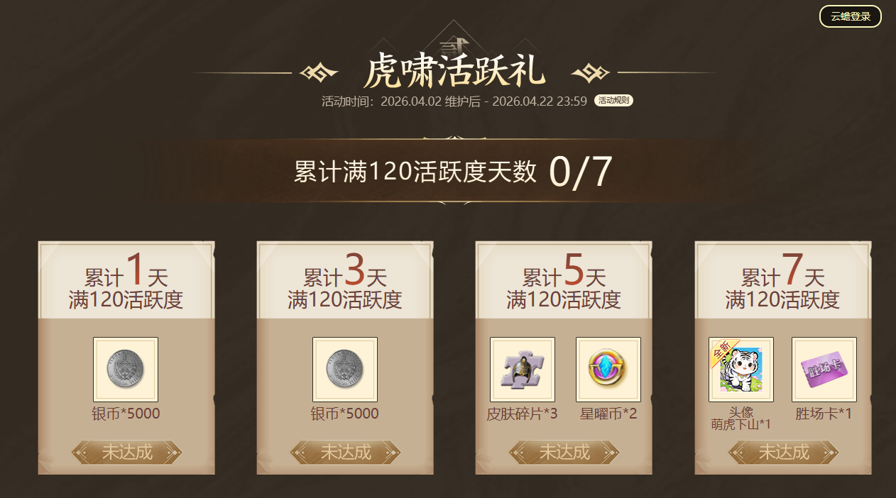 7日活跃,拿萌虎头像、皮肤碎片