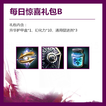 礼包内含:升华护甲盒*1、幻化力*10、通用促进剂*3