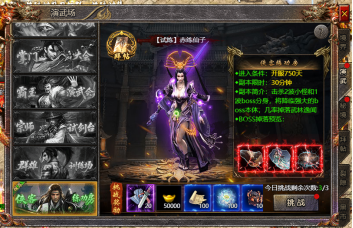 1、开服750天后,开启演武场副本玩法,演武场副本为个人副本,副本挑战时限为30分钟,每日有三次挑战次数,副本内怪物会掉落武道装备以及武道相关道具