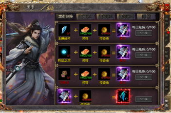 1、开服750天后,开启黑市兑换系统,可以消耗武道相关道具兑换拜帖以及更高阶级的武林装备