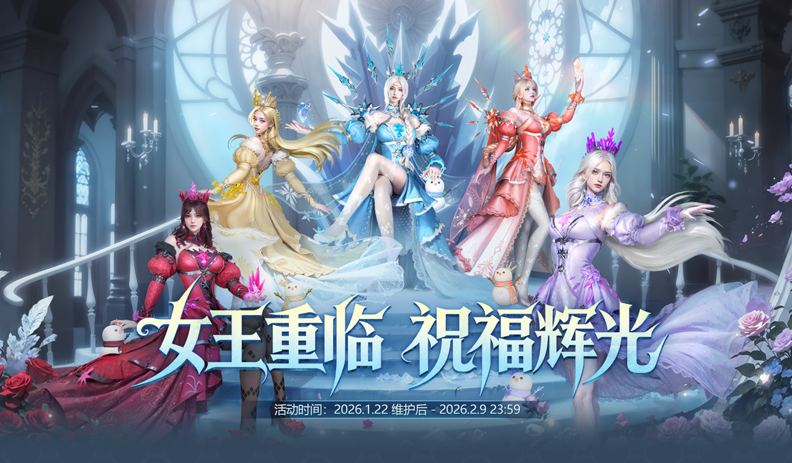 1月22日至2月9日,女王备战盲盒限时返场,可在商城消耗觉醒积分抽取。消耗觉醒积分抽取的同时,还可获得等额的祝福辉光(若首次上线时已抽取,可直接领取相应的祝福辉光)。