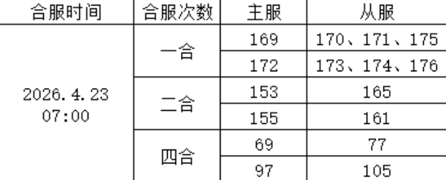合服时间:2026年4月23日7:00-9:00