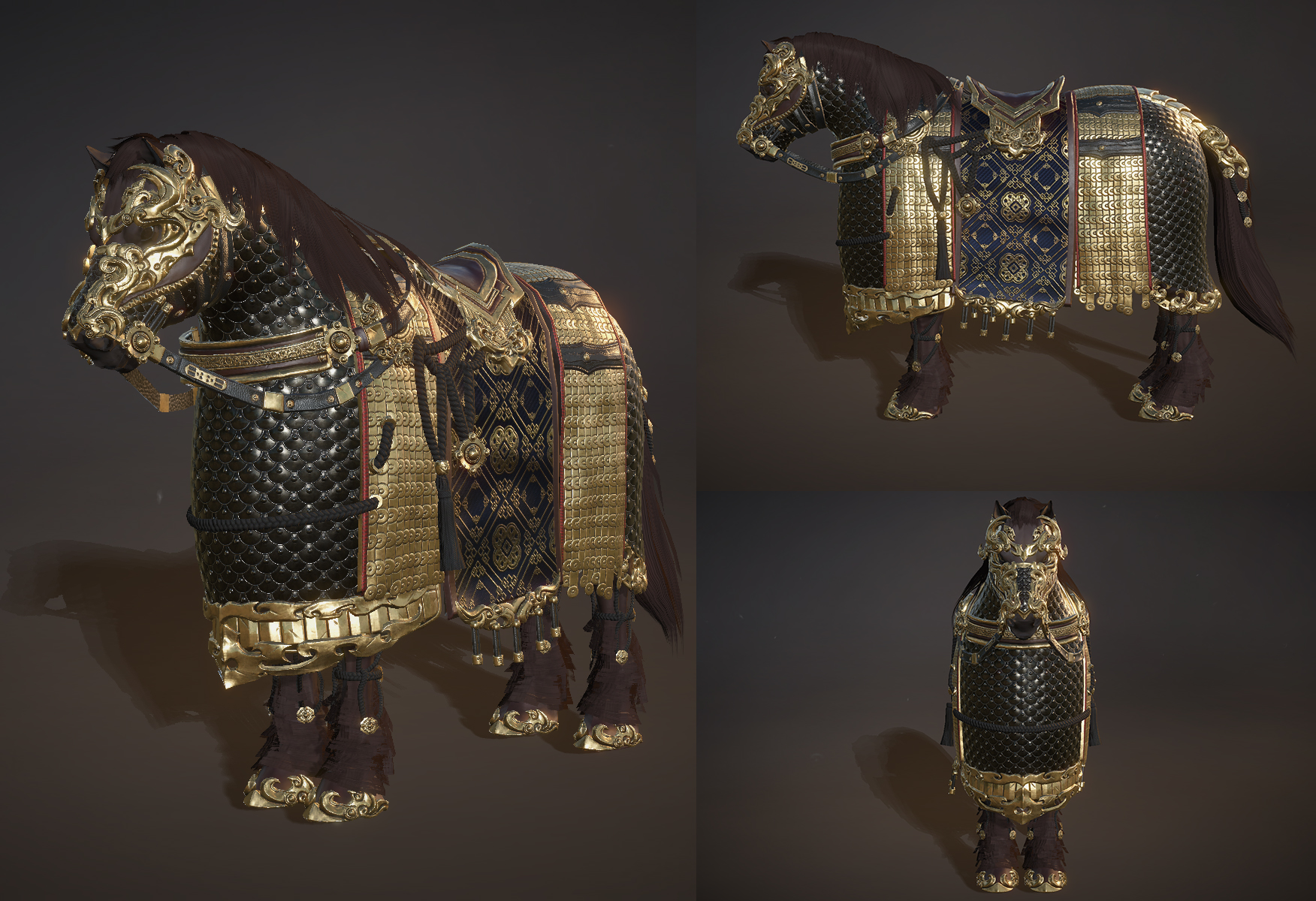 作为大奖的通用坐骑飒露紫全身披重甲,黑底金纹的配色自带“帝王御马”的贵气。李世民曾为其题赞文日:“紫燕超跃,骨腾神骏,气詟三川,威凌八阵。”