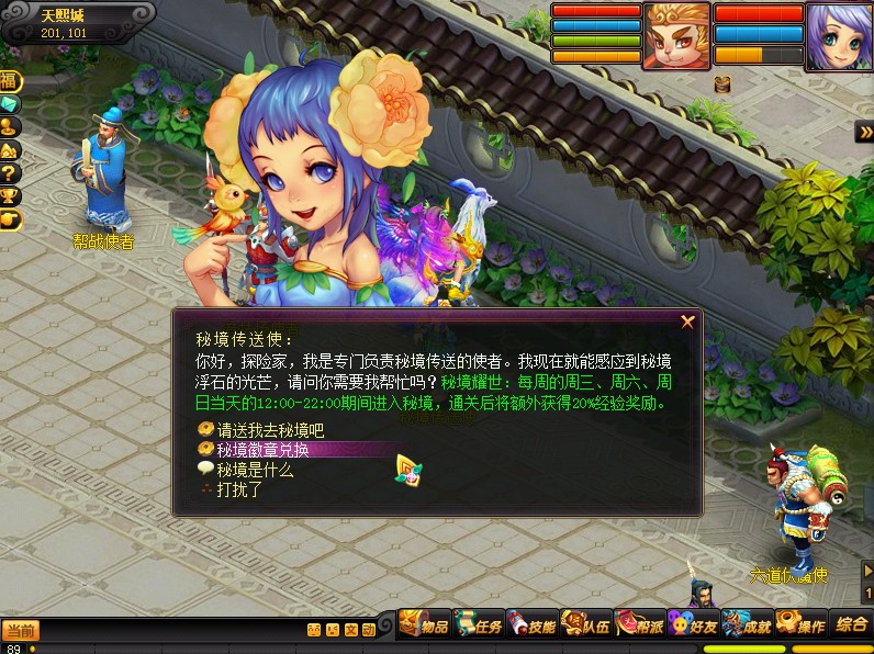 天熙城“秘境传送使者”(201,105)